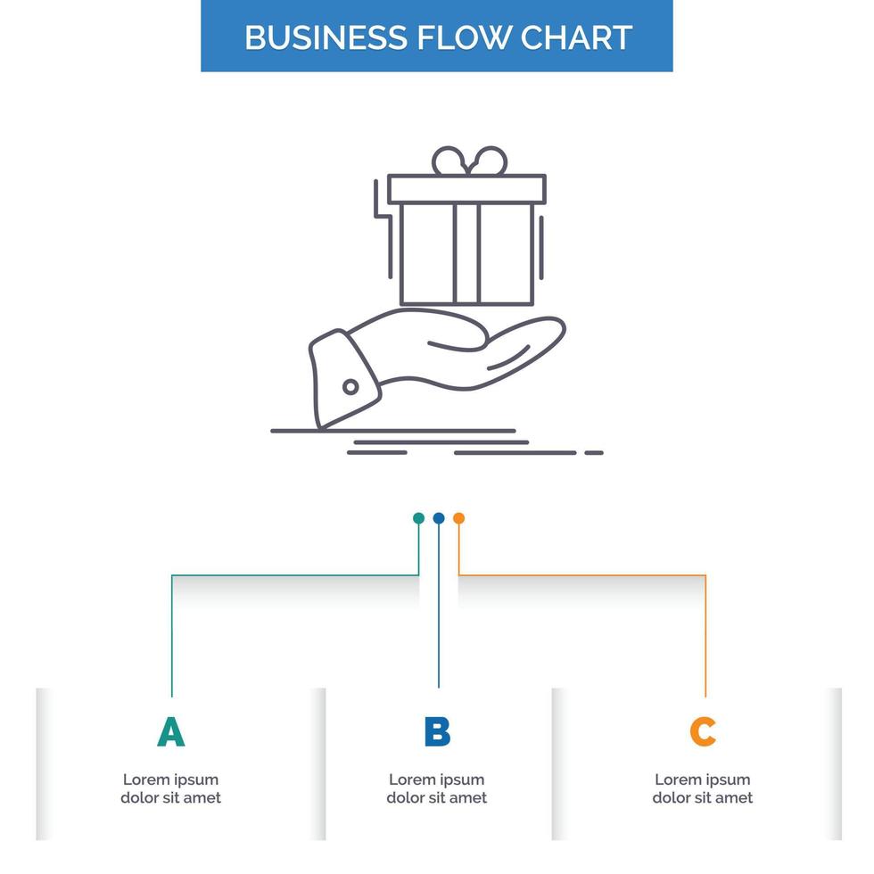 gift. surprise. solution. idea. birthday Business Flow Chart Design with 3 Steps. Line Icon For Presentation Background Template Place for text Free Vector