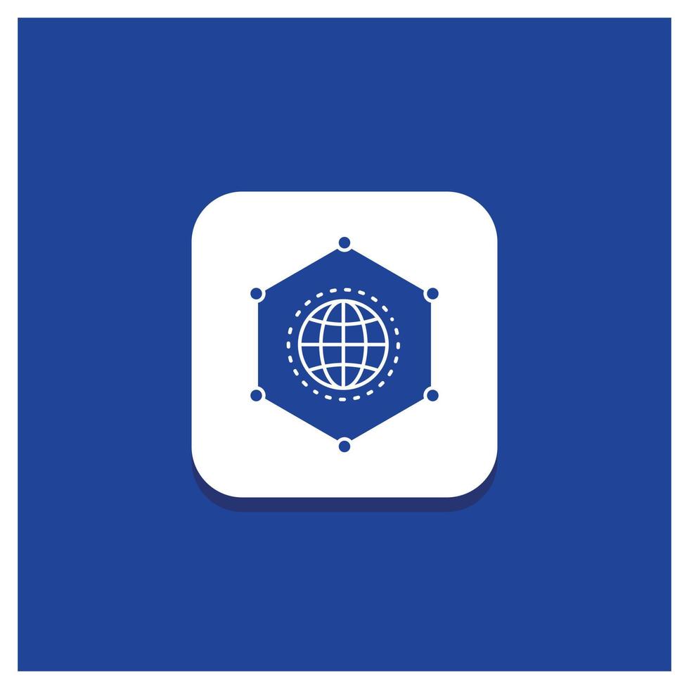 Blue Round Button for Network. Global. data. Connection. Business Glyph icon vector