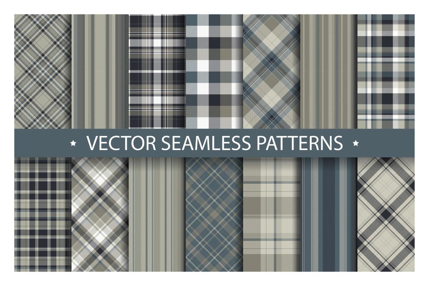 Set plaid pattern seamless. Tartan patterns fabric texture. Checkered geometric vector background. Scottish stripe blanket backdrop Pro Vector