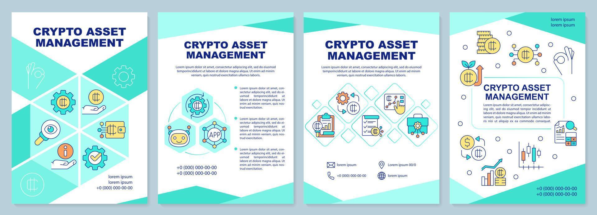 Tokenized assets management mint brochure template. Crypto. Leaflet design with linear icons. Editable 4 vector layouts for presentation, annual reports. Pro Vector