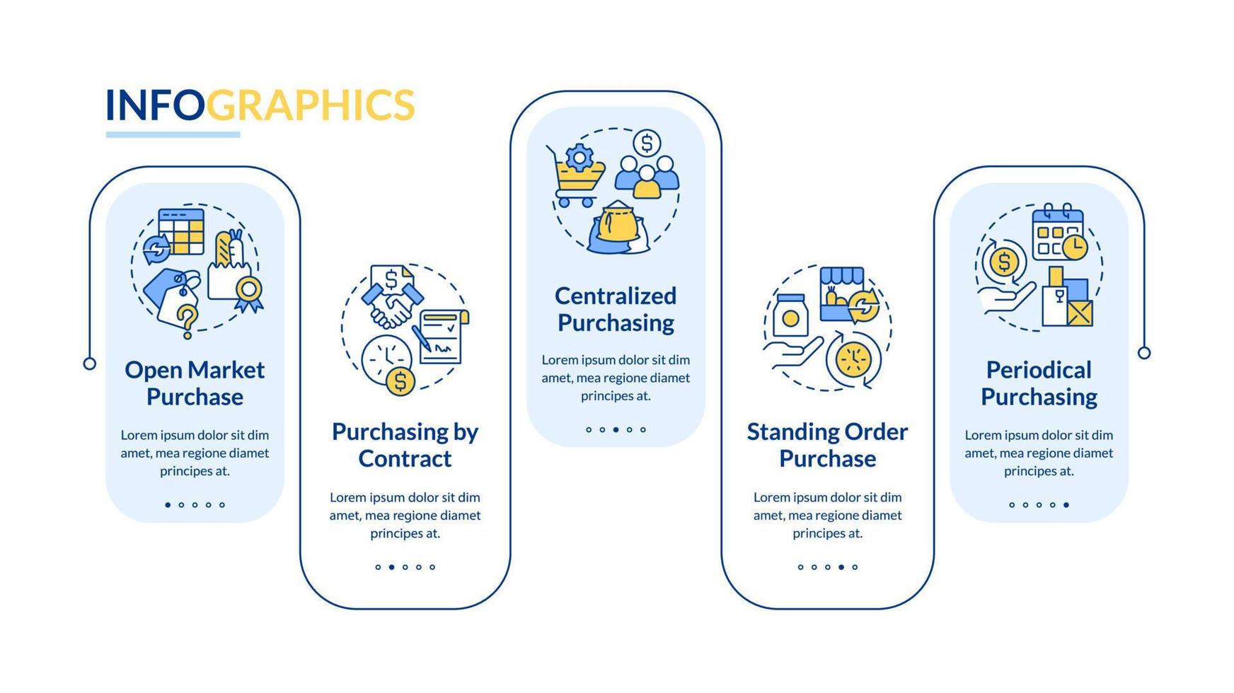 Purchase orders in business rectangle infographic template. By contract. Data visualization with 5 steps. Editable timeline info chart. Workflow layout with line icons. Pro Vector