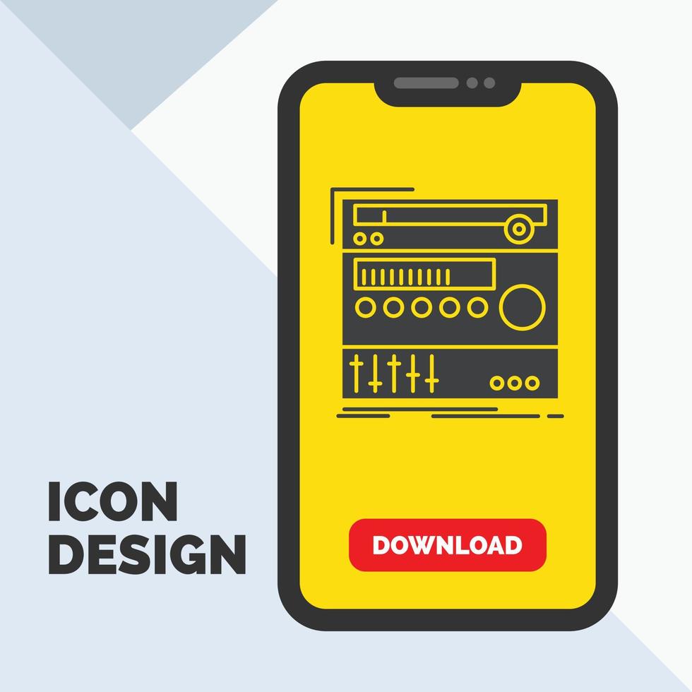 rack. component. module. sound. studio Glyph Icon in Mobile for Download Page. Yellow Background Free Vector