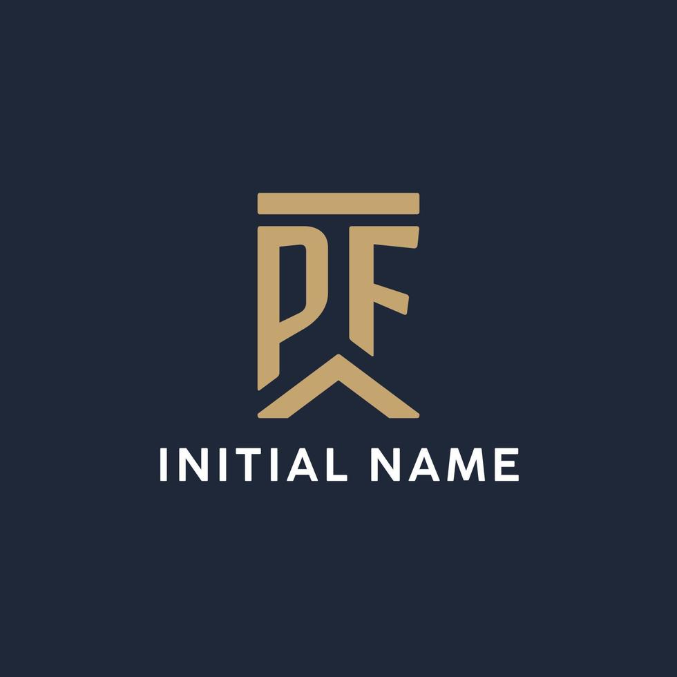 PF initial monogram logo design in a rectangular style with curved sides Pro Vector and Pro SVG