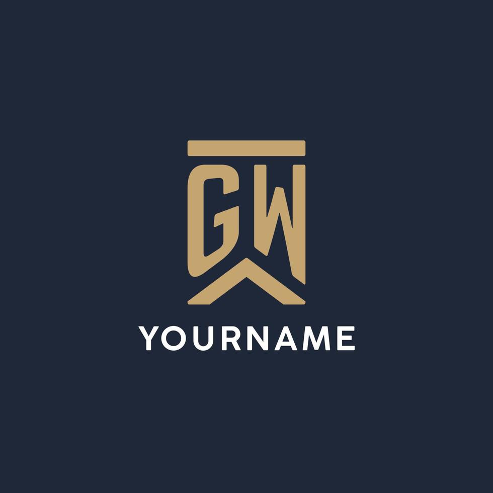 GW initial monogram logo design in a rectangular style with curved sides Pro Vector and Pro SVG