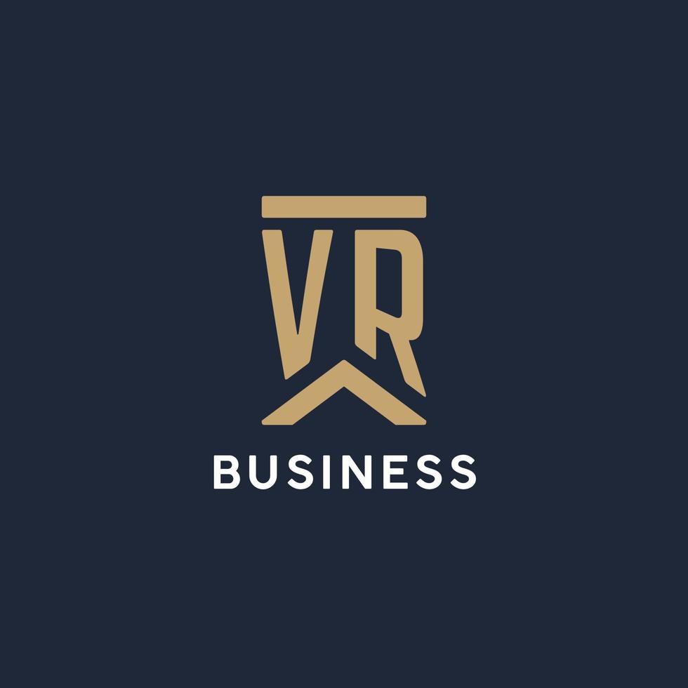 VR initial monogram logo design in a rectangular style with curved sides Pro Vector and Pro SVG