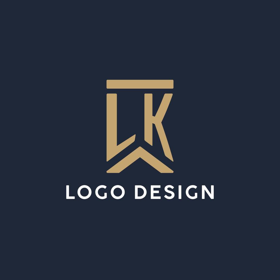 LK initial monogram logo design in a rectangular style with curved sides Pro Vector and Pro SVG