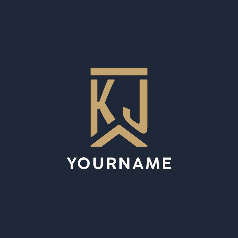 KJ initial monogram logo design in a rectangular style with curved sides Pro Vector and Pro SVG