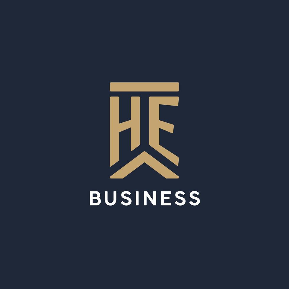 HE initial monogram logo design in a rectangular style with curved sides Pro Vector and Pro SVG