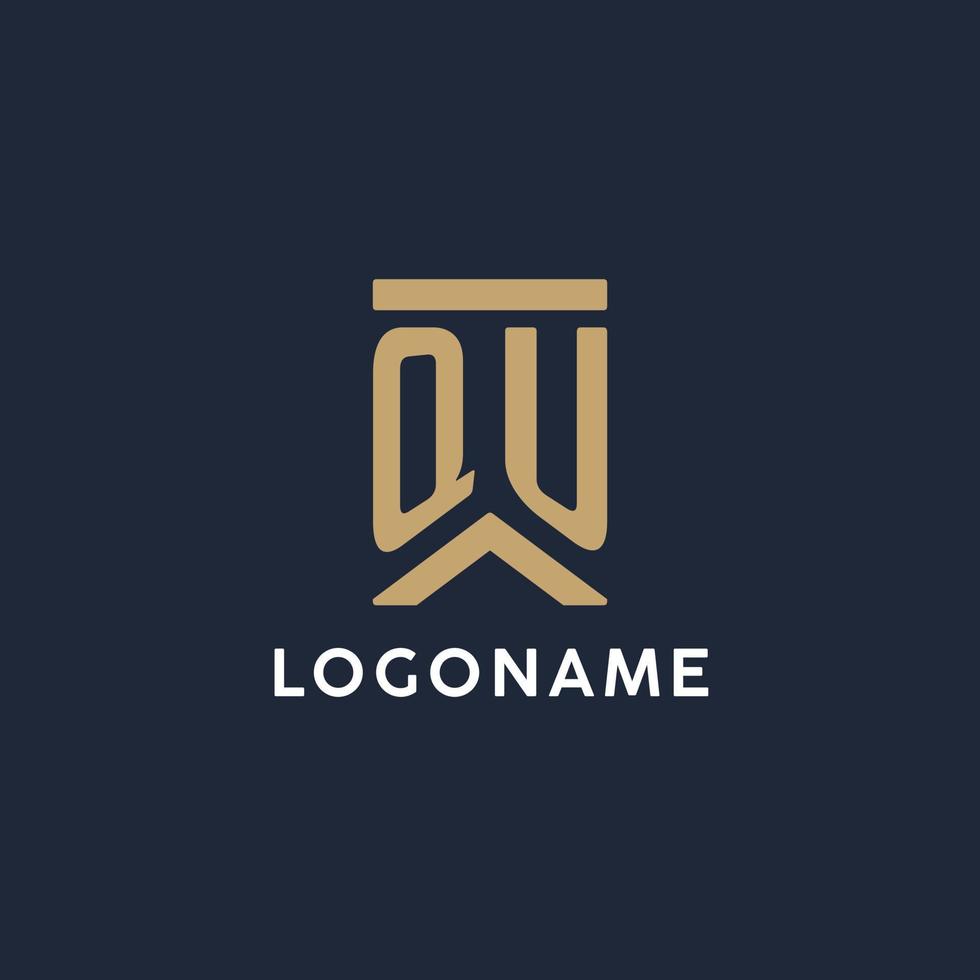 QU initial monogram logo design in a rectangular style with curved sides Pro Vector and Pro SVG