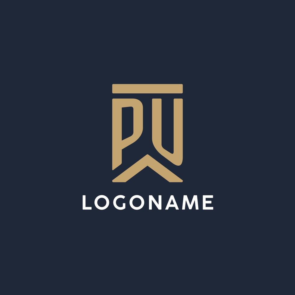 PU initial monogram logo design in a rectangular style with curved sides Pro Vector and Pro SVG