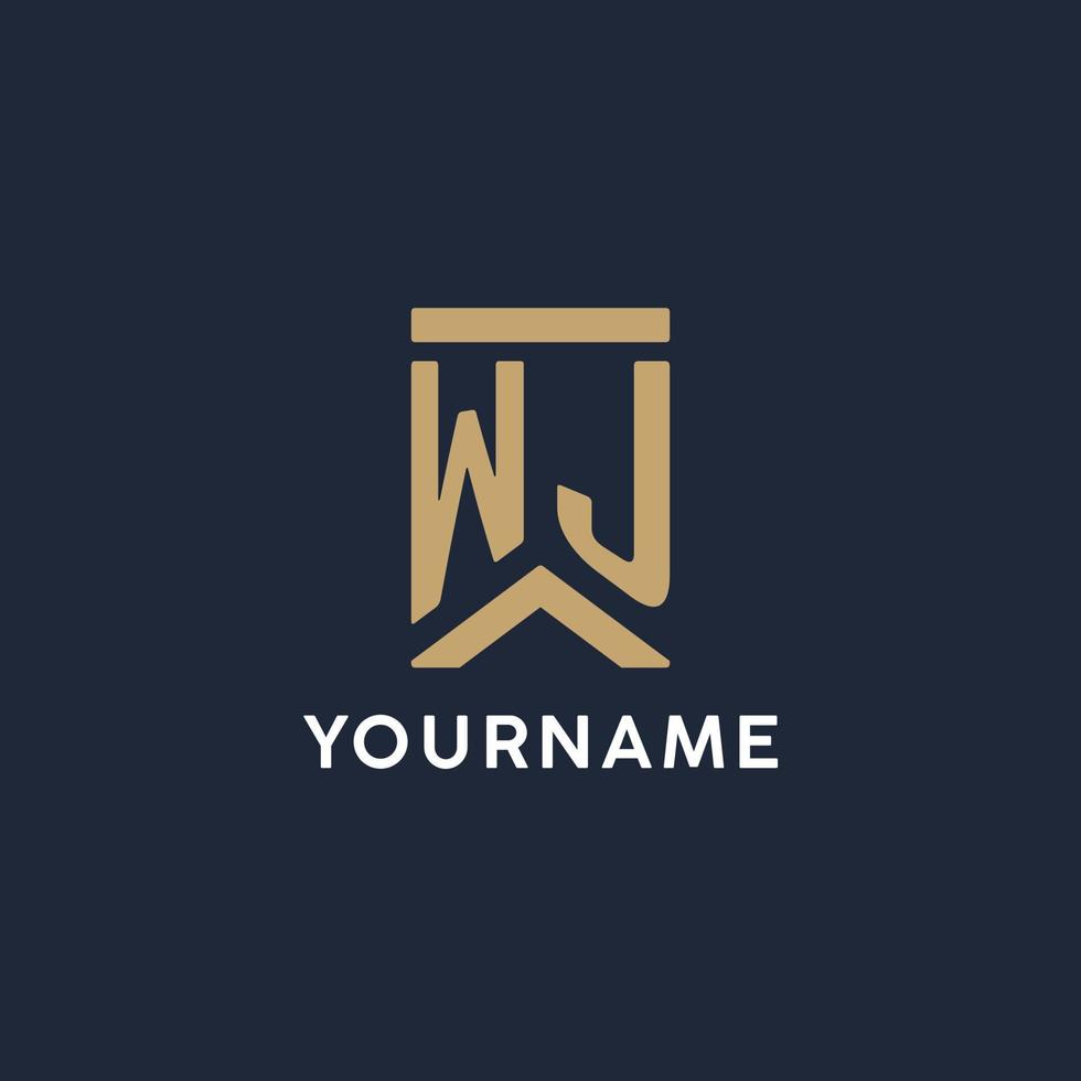 WJ initial monogram logo design in a rectangular style with curved sides Pro Vector and Pro SVG