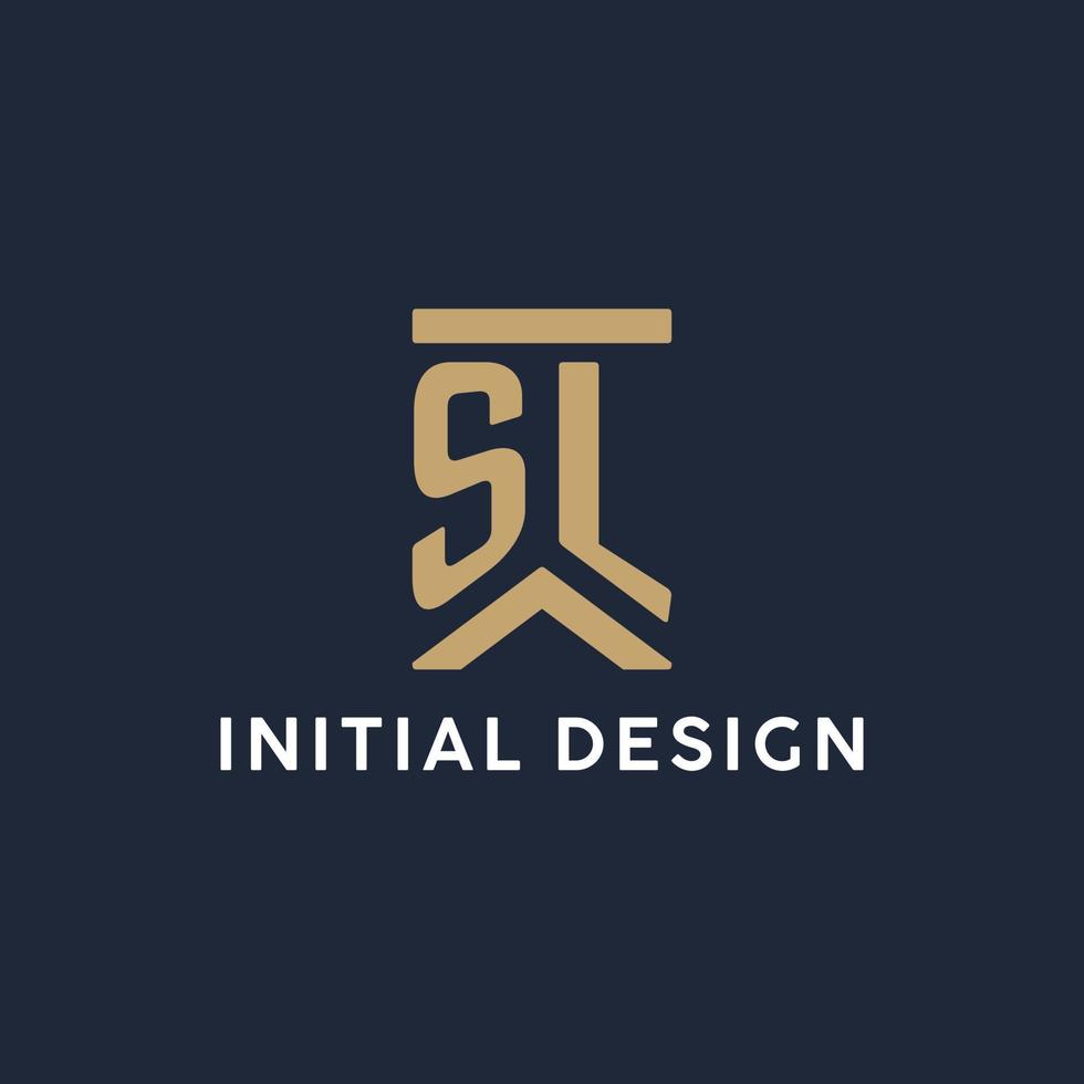 SL initial monogram logo design in a rectangular style with curved sides Pro Vector and Pro SVG