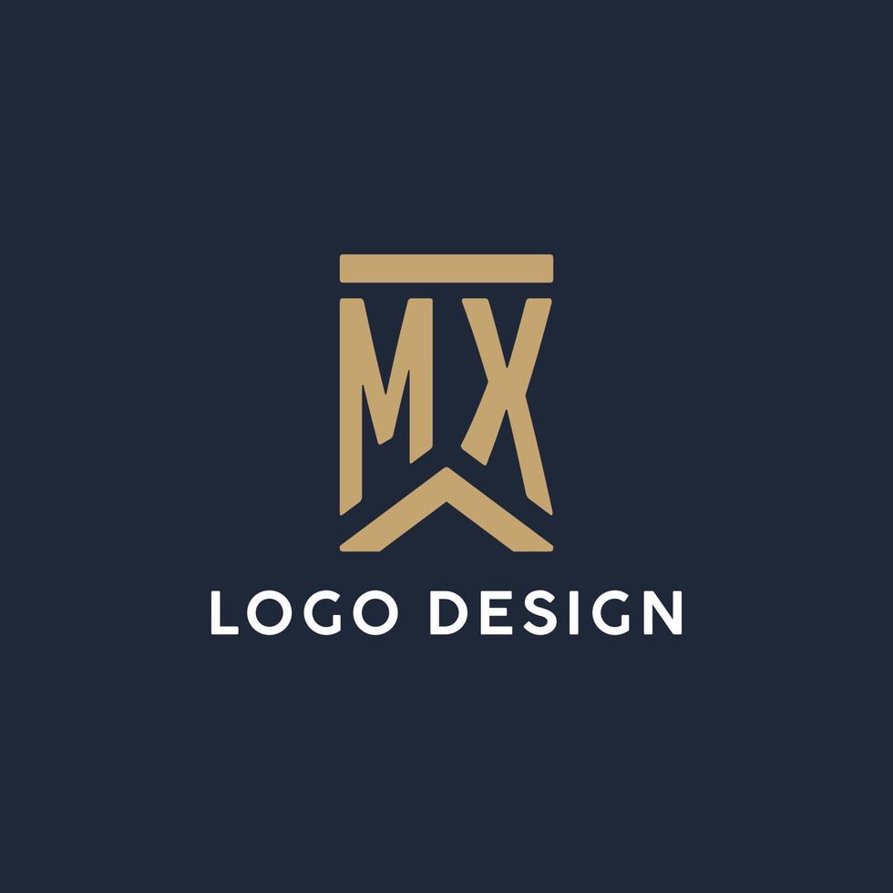 MX initial monogram logo design in a rectangular style with curved sides Pro Vector and Pro SVG