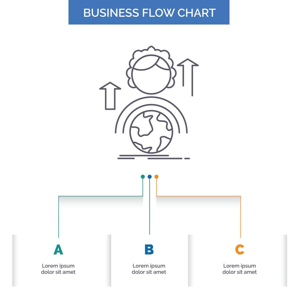 abilities. development. Female. global. online Business Flow Chart Design with 3 Steps. Line Icon For Presentation Background Template Place for text Free Vector