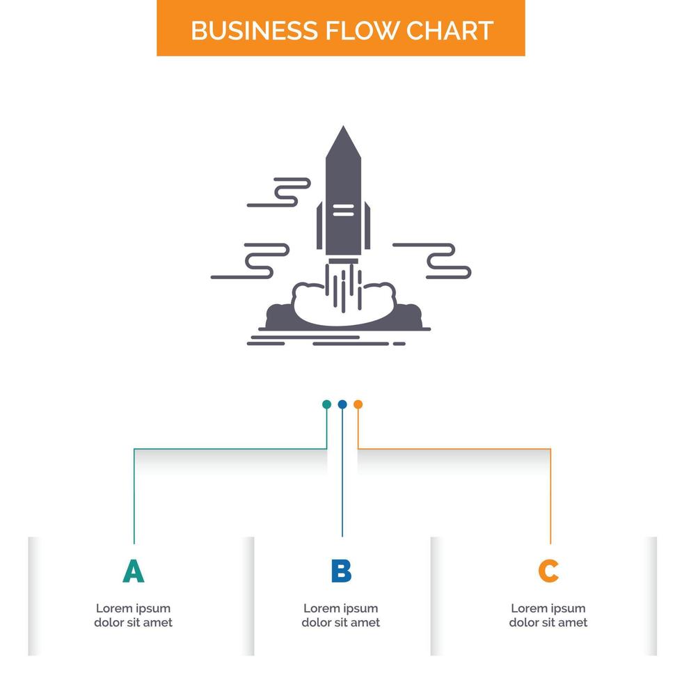 launch. Publish. App. shuttle. space Business Flow Chart Design with 3 Steps. Glyph Icon For Presentation Background Template Place for text. Free Vector