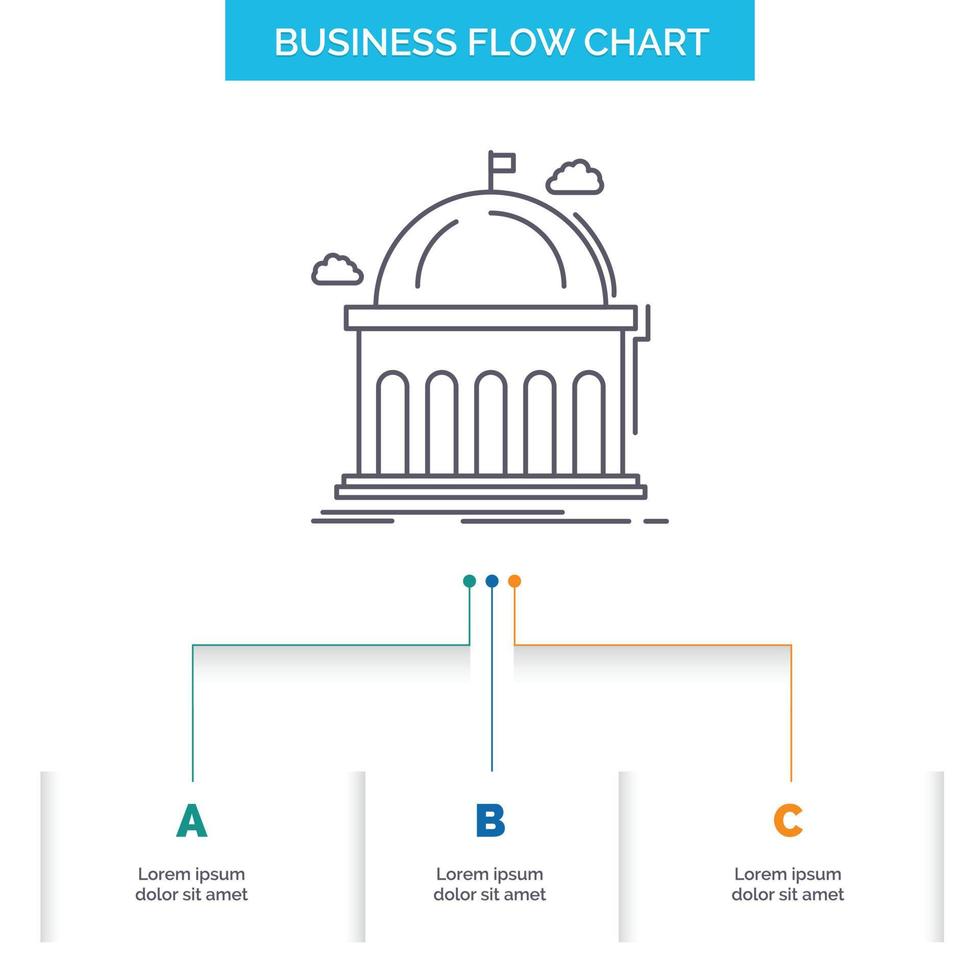 Library. school. education. learning. university Business Flow Chart Design with 3 Steps. Line Icon For Presentation Background Template Place for text Free Vector