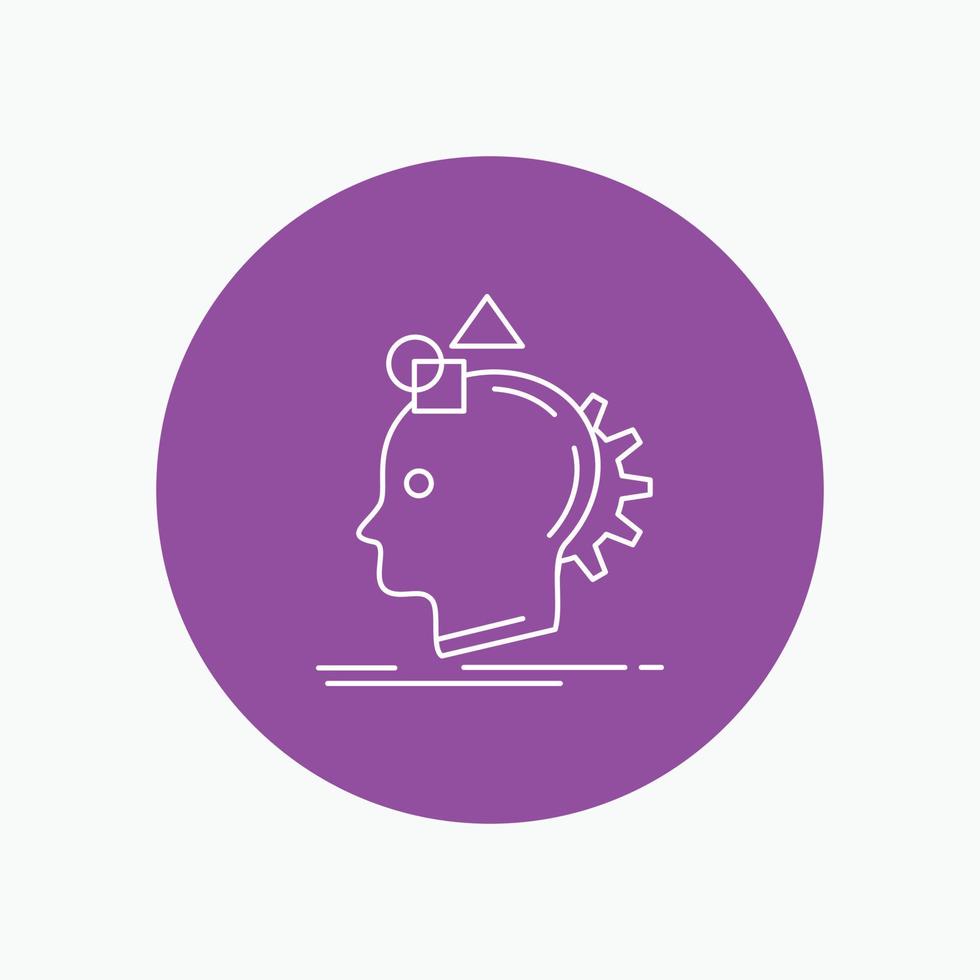 Imagination. imaginative. imagine. idea. process White Line Icon in Circle background. vector icon illustration