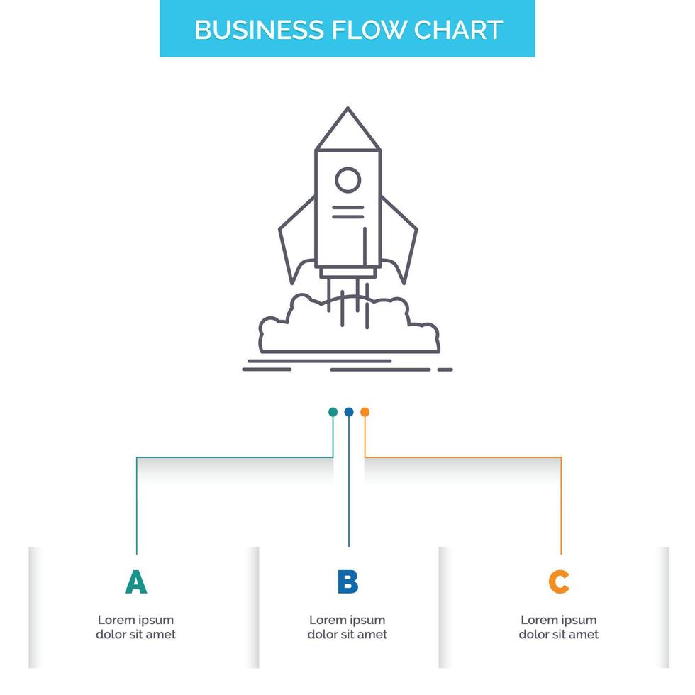 launch. startup. ship. shuttle. mission Business Flow Chart Design with 3 Steps. Line Icon For Presentation Background Template Place for text Free Vector