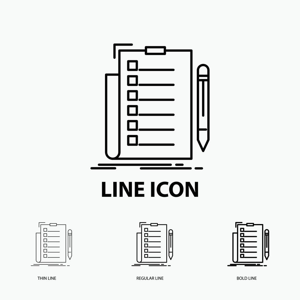 expertise. checklist. check. list. document Icon in Thin. Regular and Bold Line Style. Vector illustration