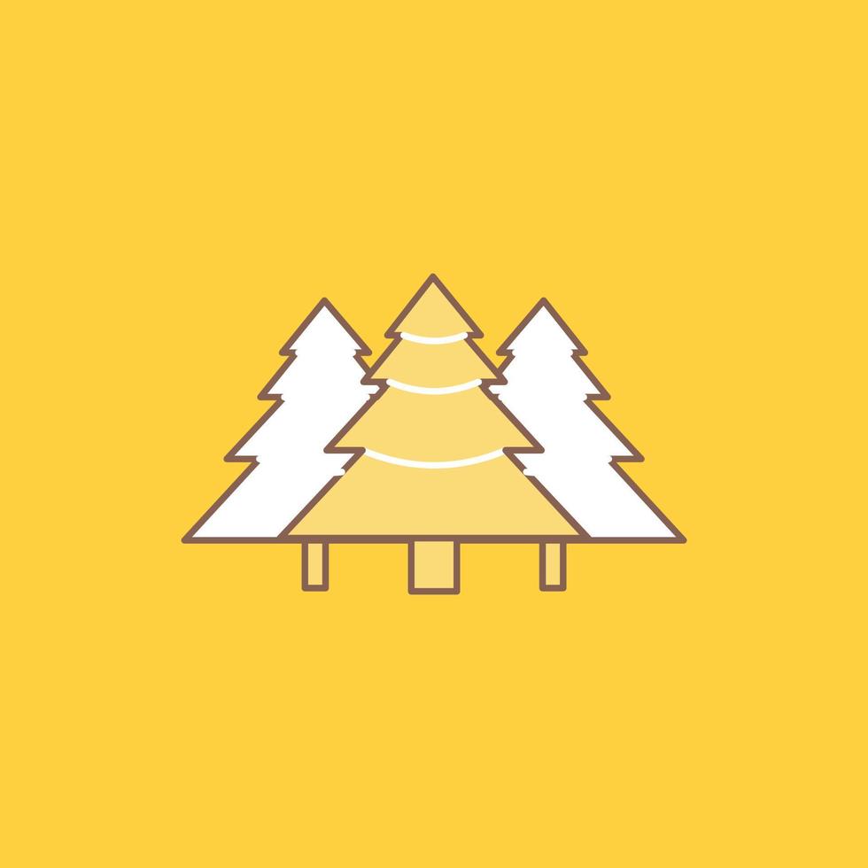 forest. camping. jungle. tree. pines Flat Line Filled Icon. Beautiful Logo button over yellow background for UI and UX. website or mobile application vector