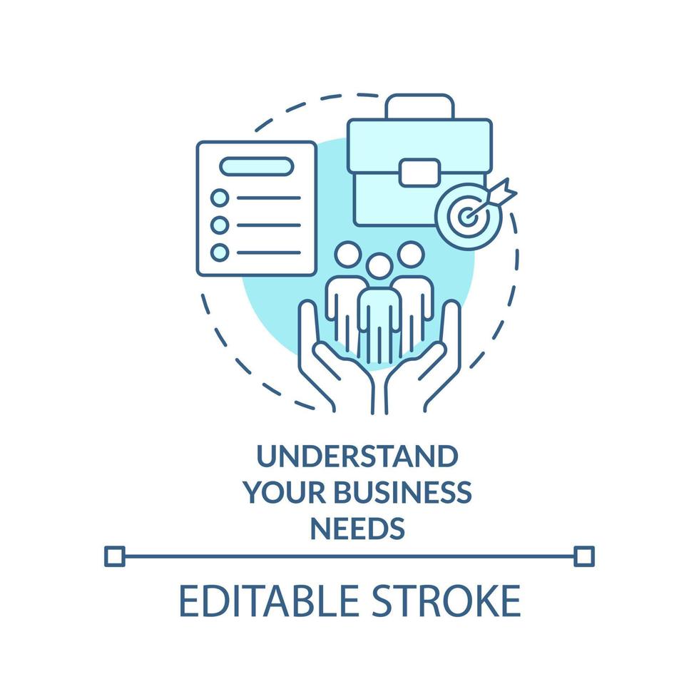 Understand business needs turquoise concept icon. Creating leaders practice abstract idea thin line illustration. Isolated outline drawing. Editable stroke. Pro Vector