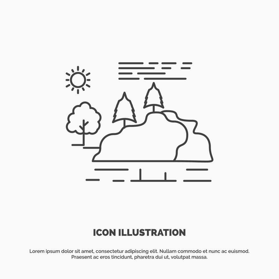 hill. landscape. nature. mountain. rain Icon. Line vector gray symbol for UI and UX. website or mobile application Free Vector