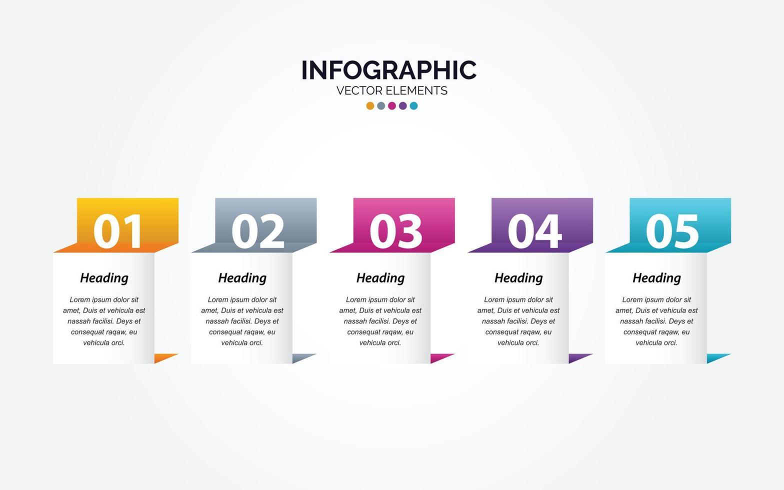 Timeline 5 options Horizontal Infographic for presentations workflow process diagram flow chart report vector
