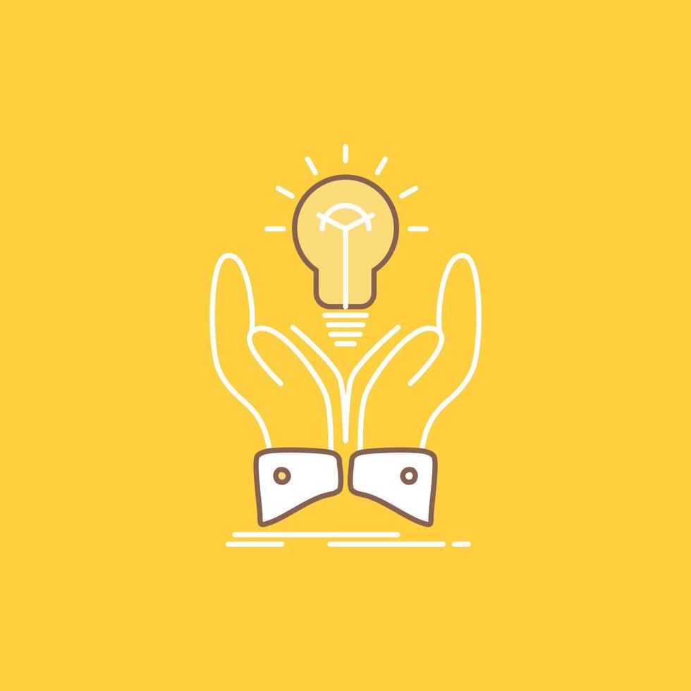 idea. ideas. creative. share. hands Flat Line Filled Icon. Beautiful Logo button over yellow background for UI and UX. website or mobile application Free Vector