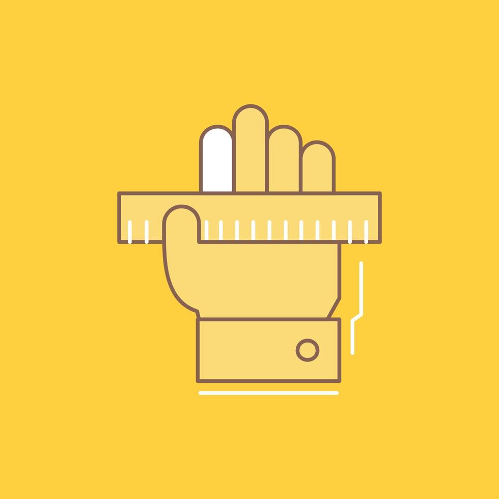 Education. hand. learn. learning. ruler Flat Line Filled Icon. Beautiful Logo button over yellow background for UI and UX. website or mobile application vector