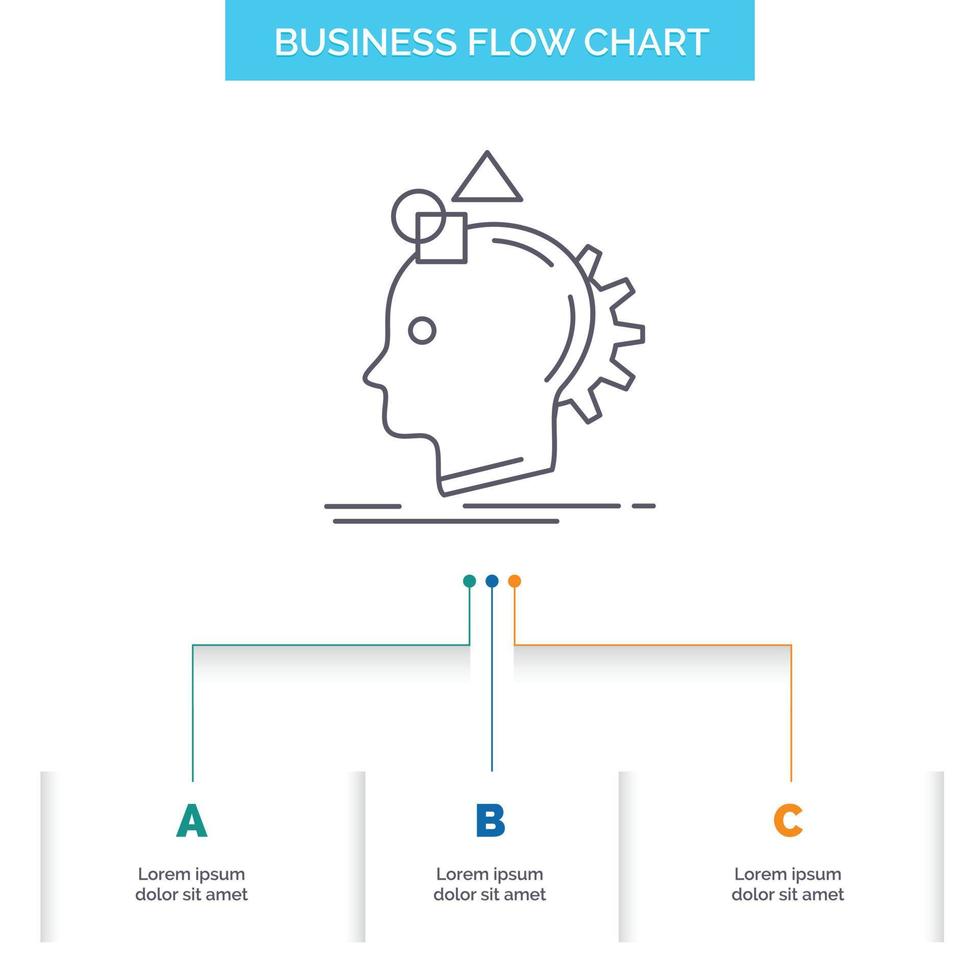 Imagination. imaginative. imagine. idea. process Business Flow Chart Design with 3 Steps. Line Icon For Presentation Background Template Place for text Free Vector