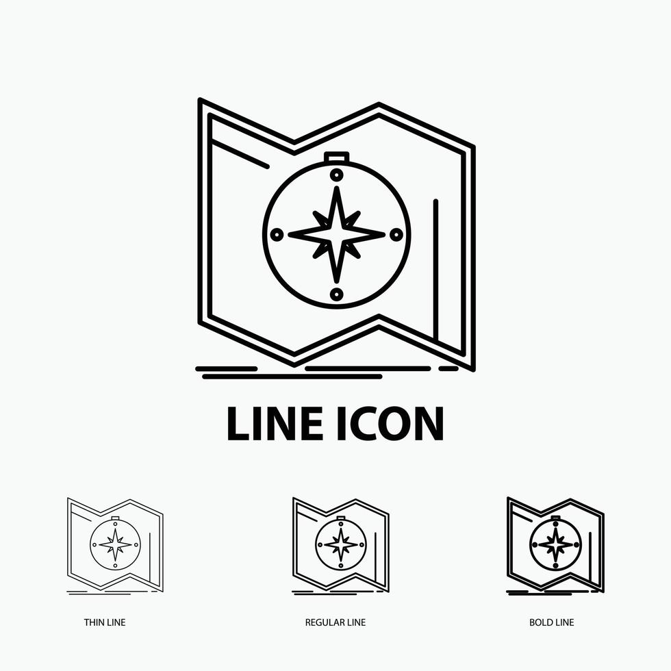 Direction. explore. map. navigate. navigation Icon in Thin. Regular and Bold Line Style. Vector illustration