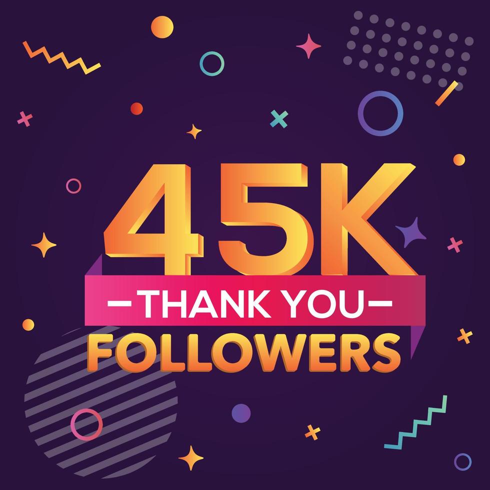 Thank you 45000 followers,thanks banner.First 45K follower congratulation card with geometric figures,lines,squares,circles for Social Networks.Web blogger celebrate a large number of subscribers. Pro Vector and Pro SVG