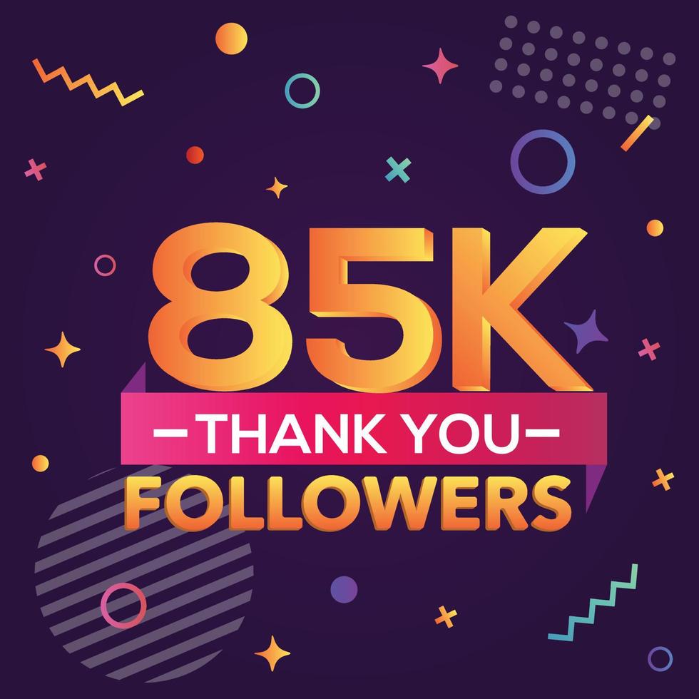 Thank you 85000 followers,thanks banner.First 85K follower congratulation card with geometric figures,lines,squares,circles for Social Networks.Web blogger celebrate a large number of subscribers. Pro Vector and Pro SVG