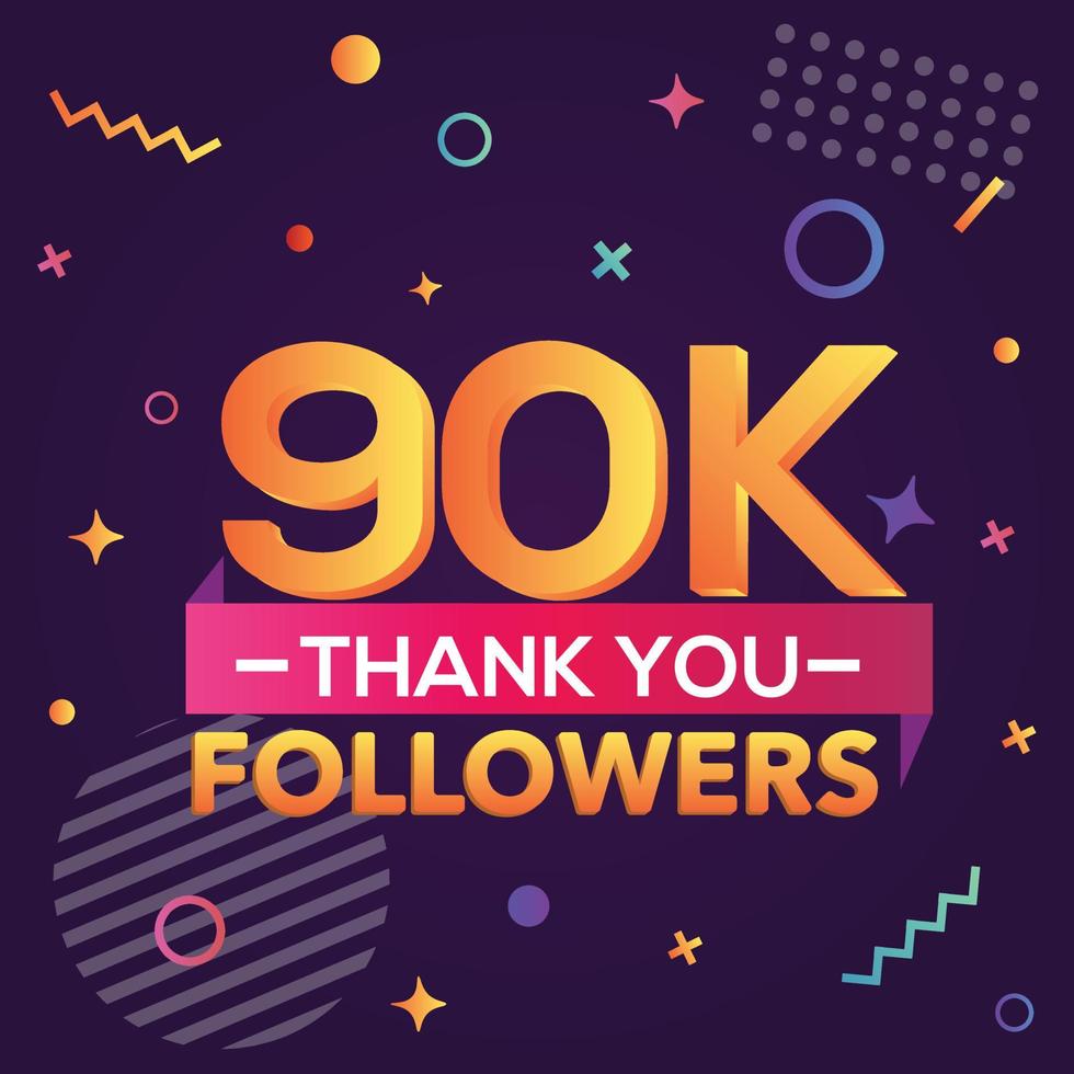Thank you 90000 followers,thanks banner.First 90K follower congratulation card with geometric figures,lines,squares,circles for Social Networks.Web blogger celebrate a large number of subscribers. Pro Vector and Pro SVG