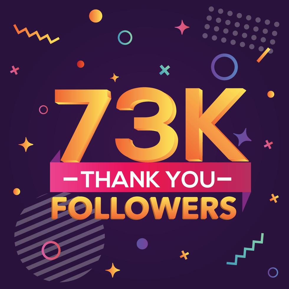 Thank you 73000 followers,thanks banner.First 73K follower congratulation card with geometric figures,lines,squares,circles for Social Networks.Web blogger celebrate a large number of subscribers. Pro Vector and Pro SVG