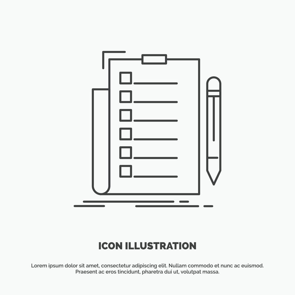 expertise. checklist. check. list. document Icon. Line vector gray symbol for UI and UX. website or mobile application