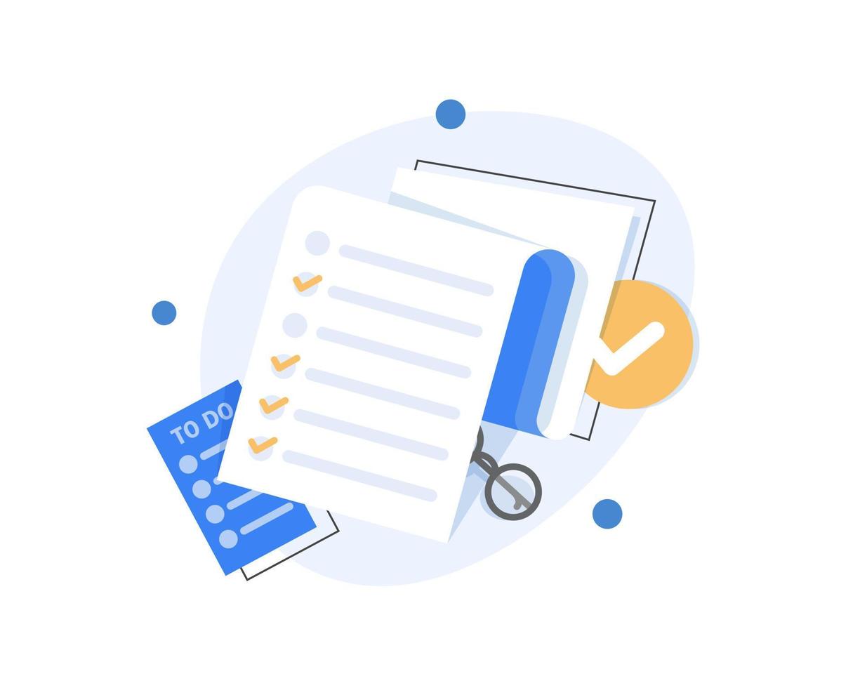 To do list or planning icon concept. All tasks are completed. Paper sheets with check marks,flat design icon vector illustration Pro Vector