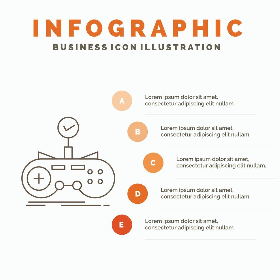 Check. controller. game. gamepad. gaming Infographics Template for Website and Presentation. Line Gray icon with Orange infographic style vector illustration Free Vector