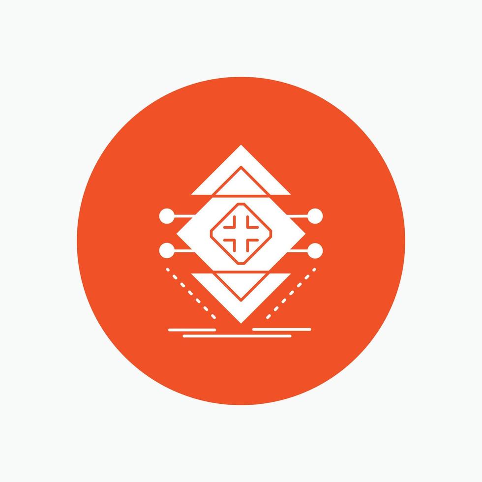 Computing. data. infrastructure. science. structure White Glyph Icon in Circle. Vector Button illustration