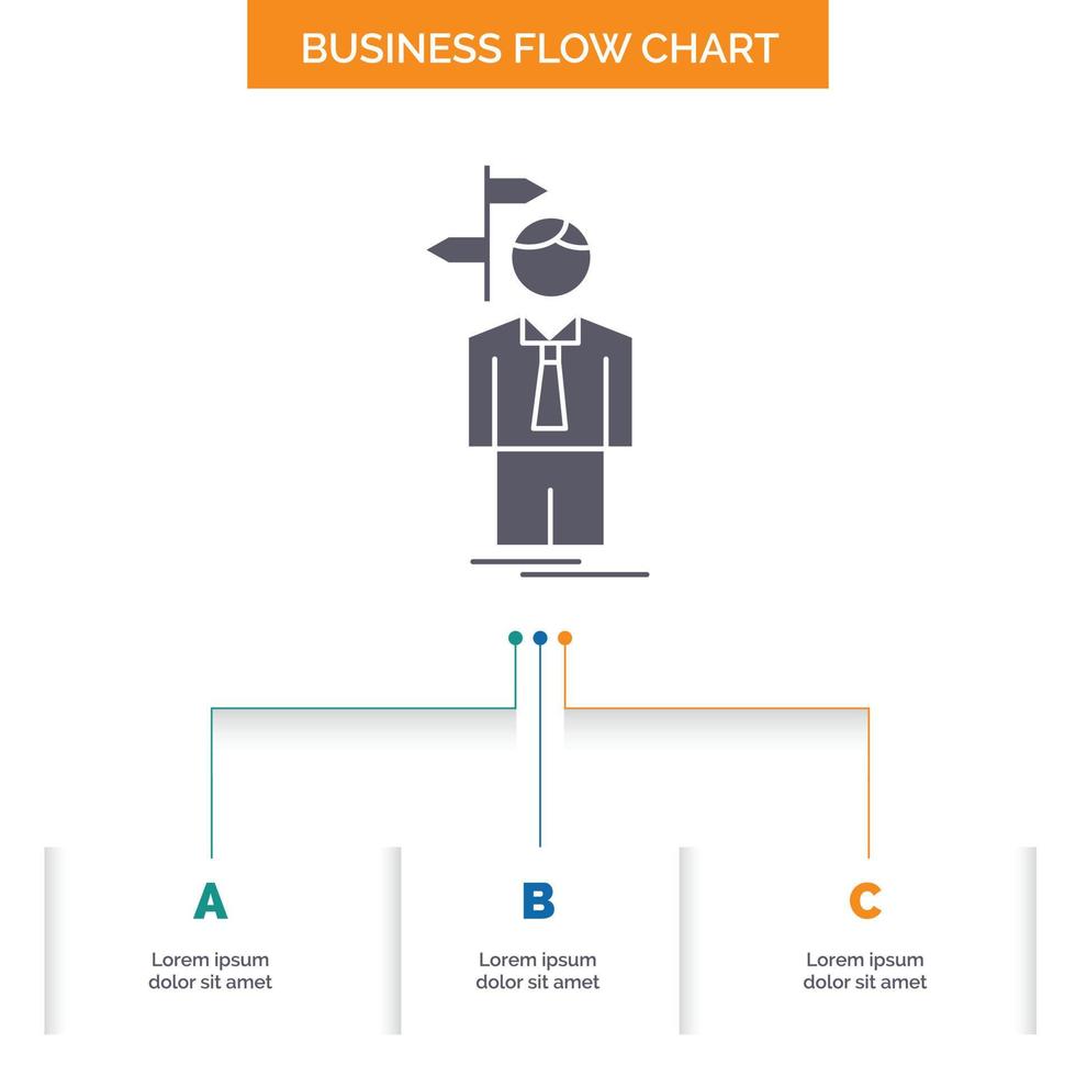 Arrow. choice. choose. decision. direction Business Flow Chart Design with 3 Steps. Glyph Icon For Presentation Background Template Place for text. Free Vector