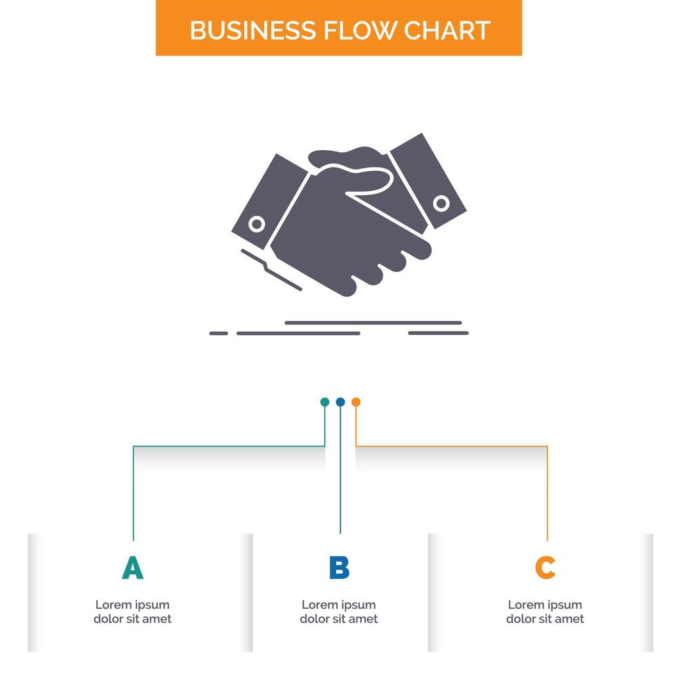 handshake. hand shake. shaking hand. Agreement. business Business Flow Chart Design with 3 Steps. Glyph Icon For Presentation Background Template Place for text. vector