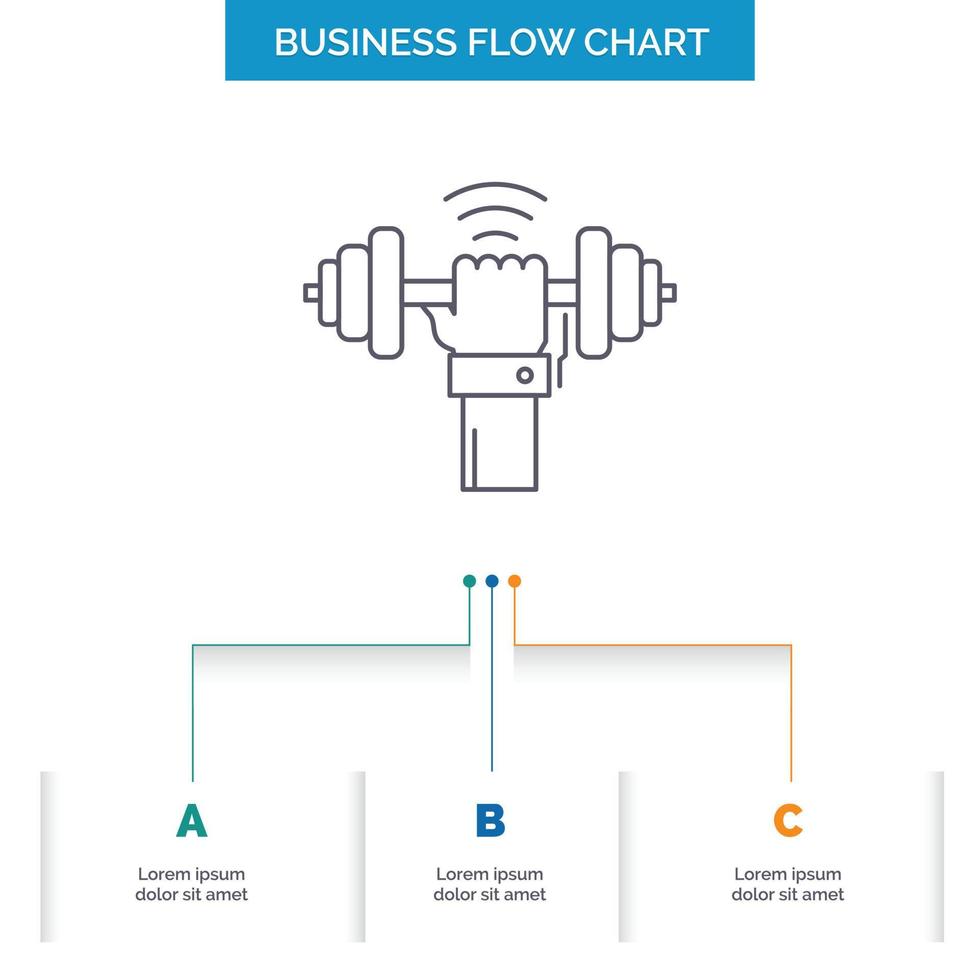 Dumbbell. gain. lifting. power. sport Business Flow Chart Design with 3 Steps. Line Icon For Presentation Background Template Place for text Free Vector