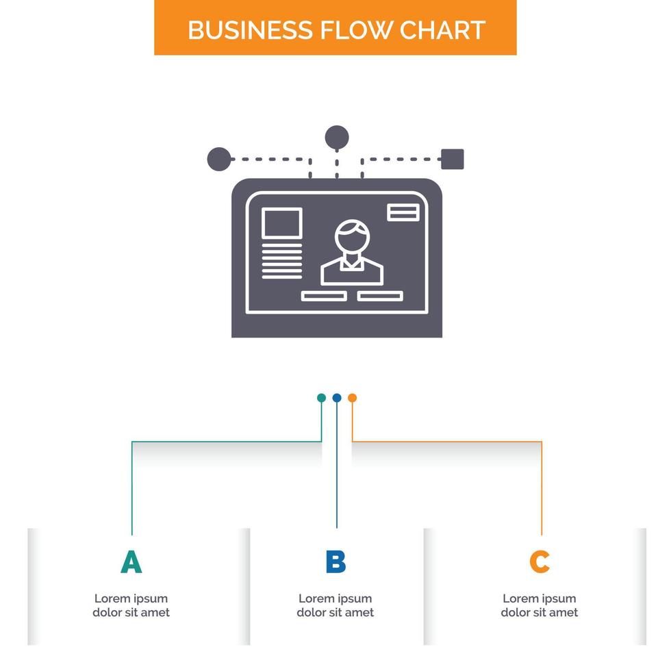 interface. website. user. layout. design Business Flow Chart Design with 3 Steps. Glyph Icon For Presentation Background Template Place for text. Free Vector