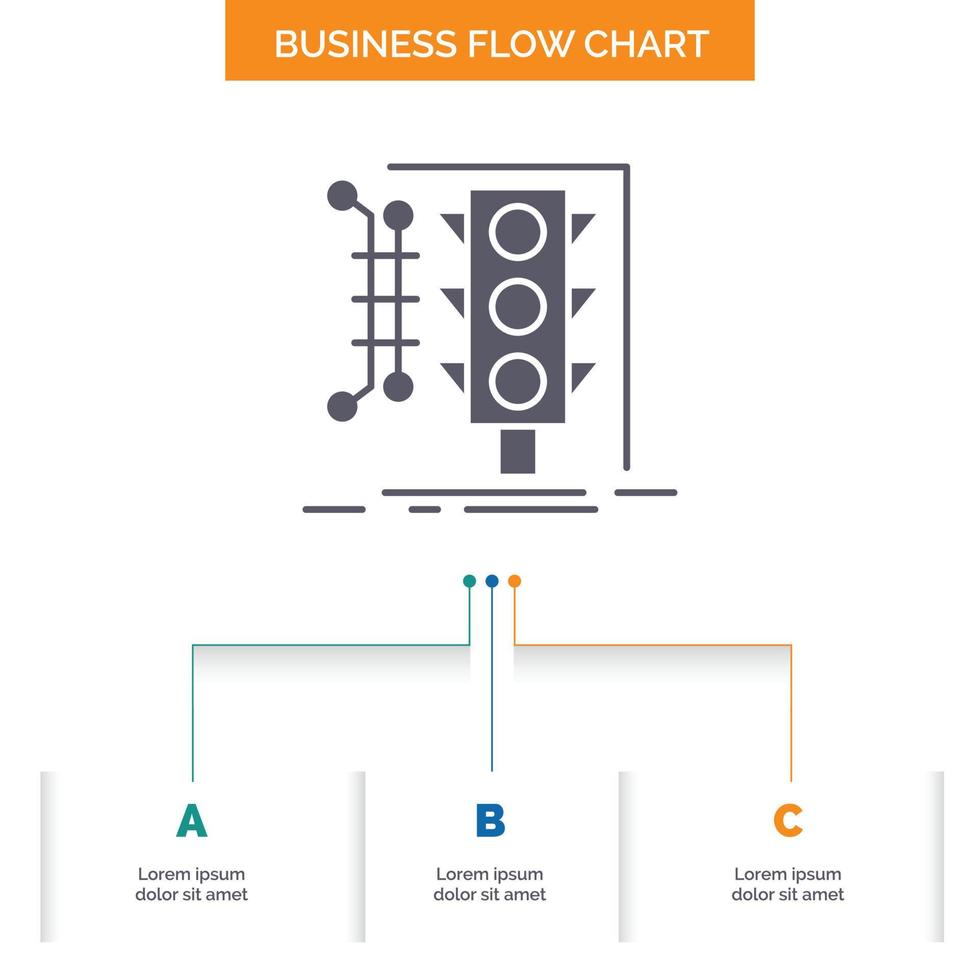 City. management. monitoring. smart. traffic Business Flow Chart Design with 3 Steps. Glyph Icon For Presentation Background Template Place for text. Free Vector
