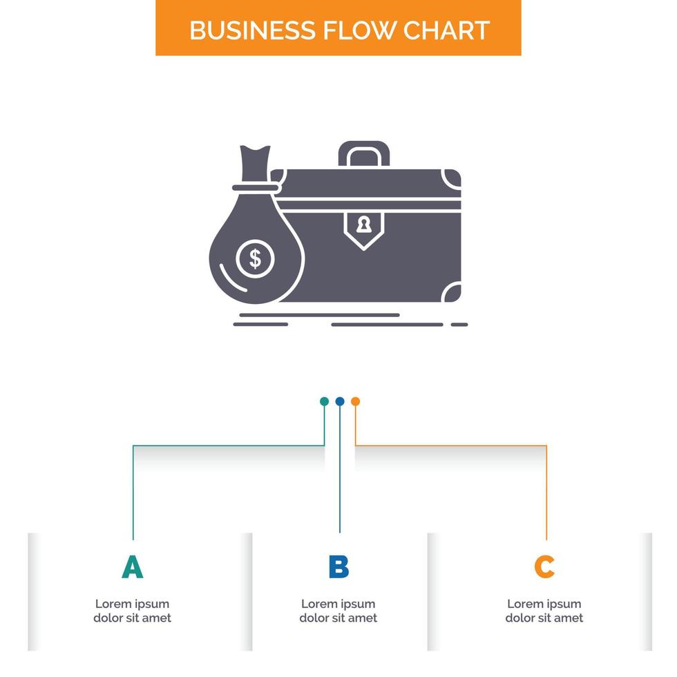 briefcase. business. case. open. portfolio Business Flow Chart Design with 3 Steps. Glyph Icon For Presentation Background Template Place for text. Free Vector