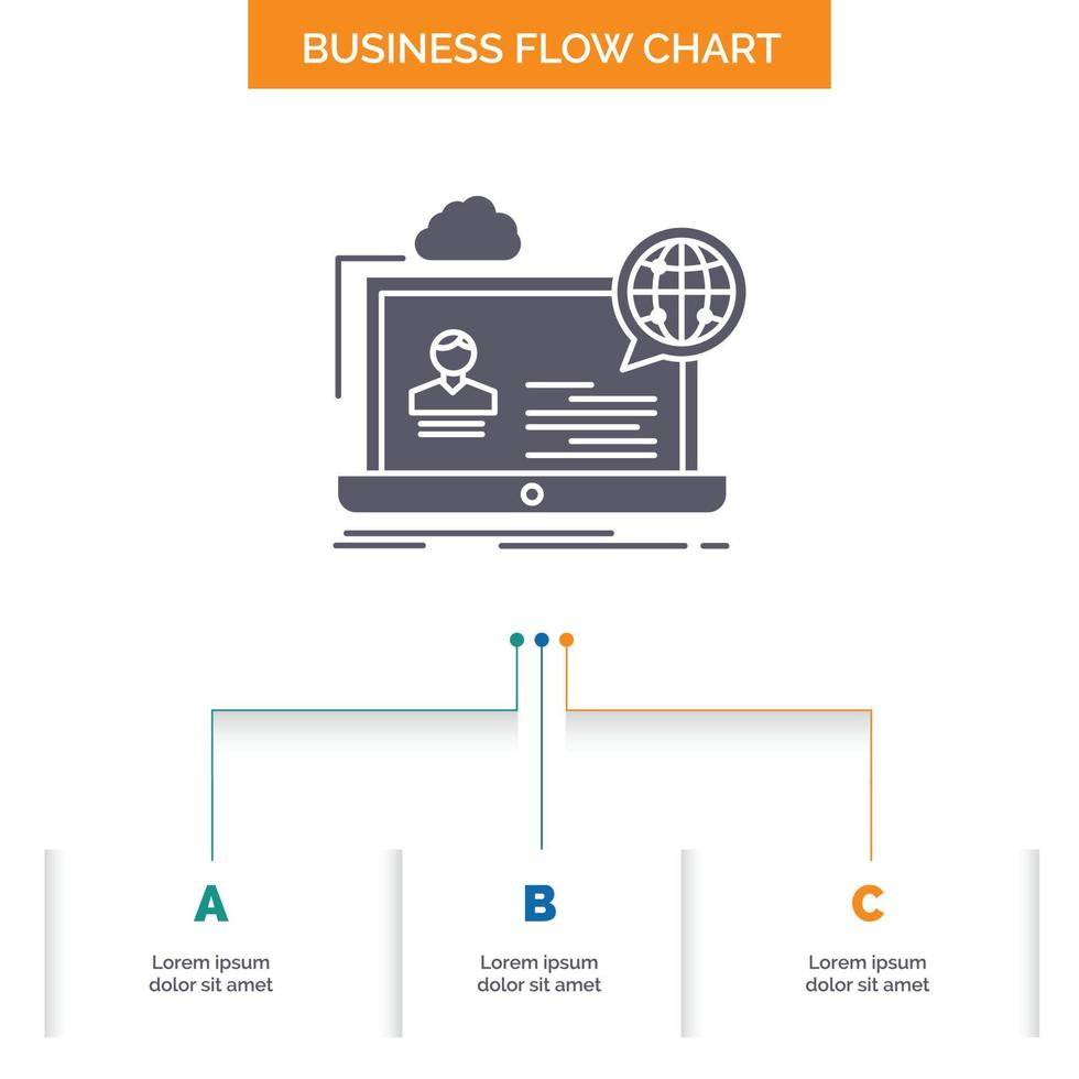 webinar. forum. online. seminar. website Business Flow Chart Design with 3 Steps. Glyph Icon For Presentation Background Template Place for text. Free Vector