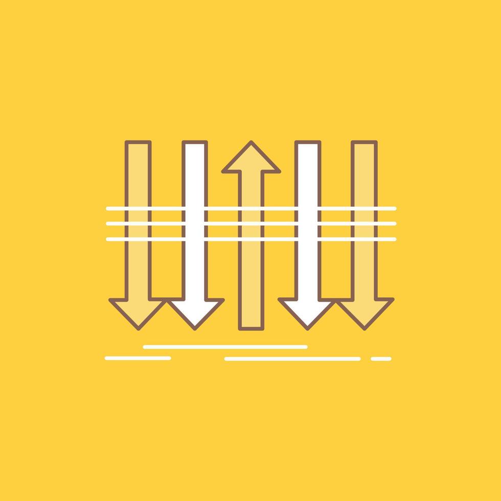 Arrow. business. distinction. forward. individuality Flat Line Filled Icon. Beautiful Logo button over yellow background for UI and UX. website or mobile application vector