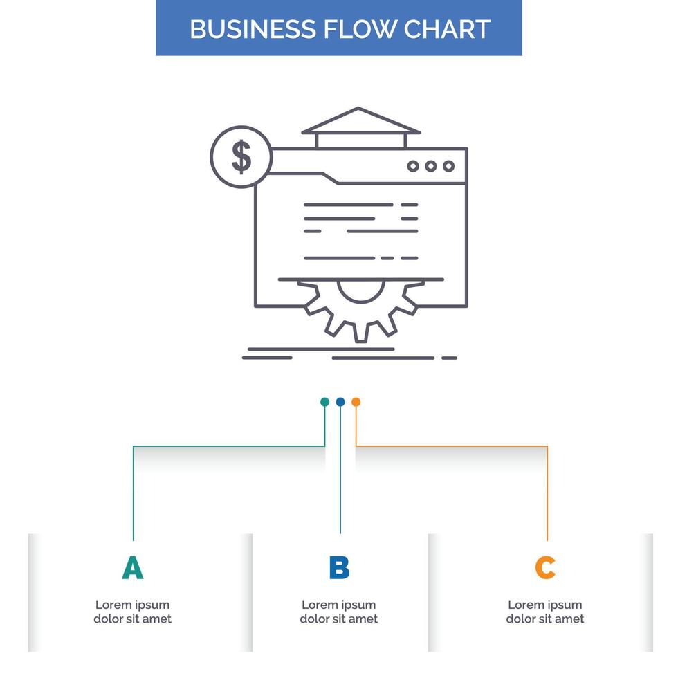 seo. progress. globe. technology. website Business Flow Chart Design with 3 Steps. Line Icon For Presentation Background Template Place for text Free Vector