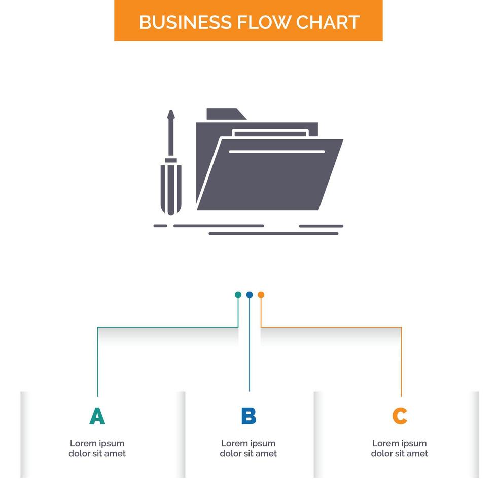 folder. tool. repair. resource. service Business Flow Chart Design with 3 Steps. Glyph Icon For Presentation Background Template Place for text. Free Vector