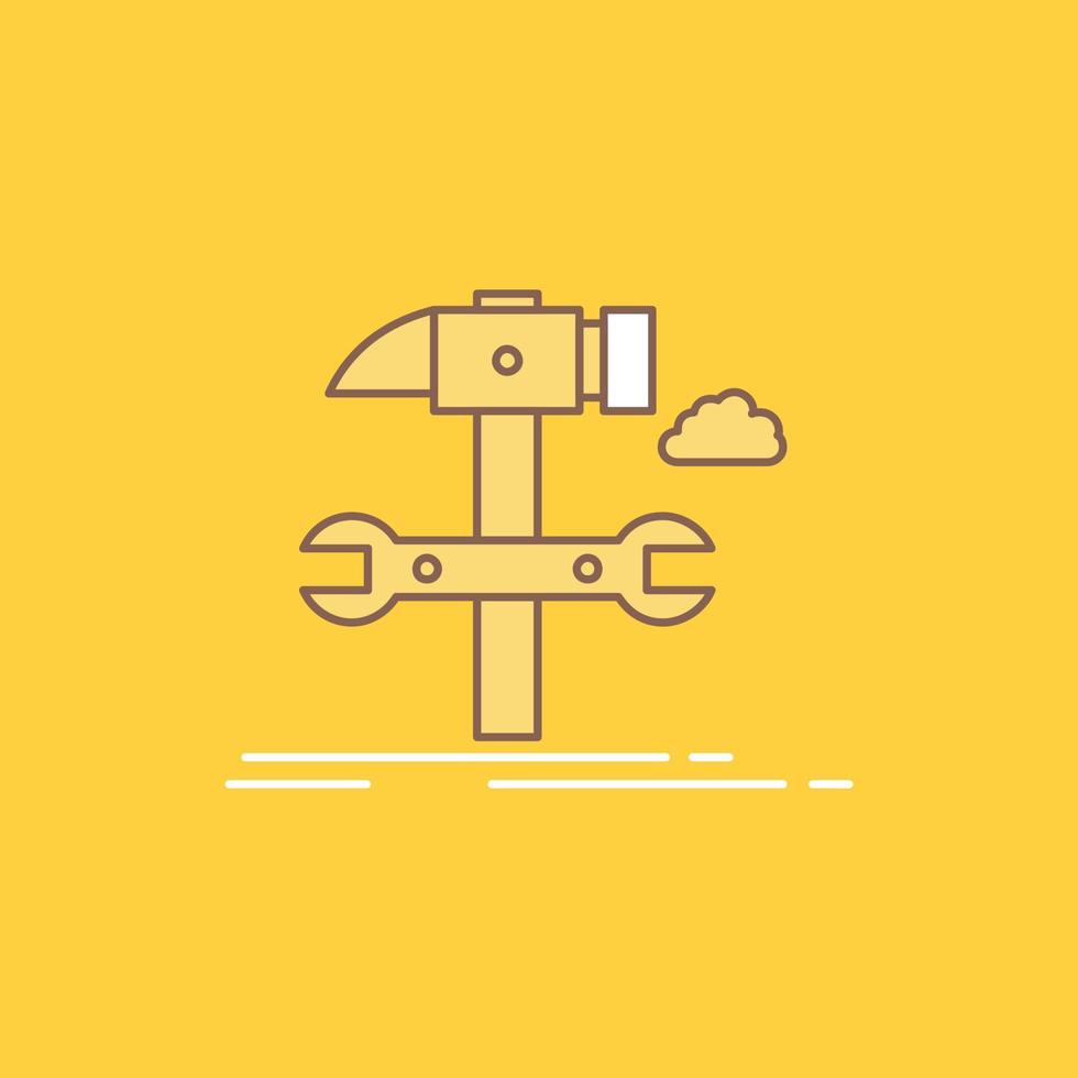 Build. engineering. hammer. repair. service Flat Line Filled Icon. Beautiful Logo button over yellow background for UI and UX. website or mobile application vector